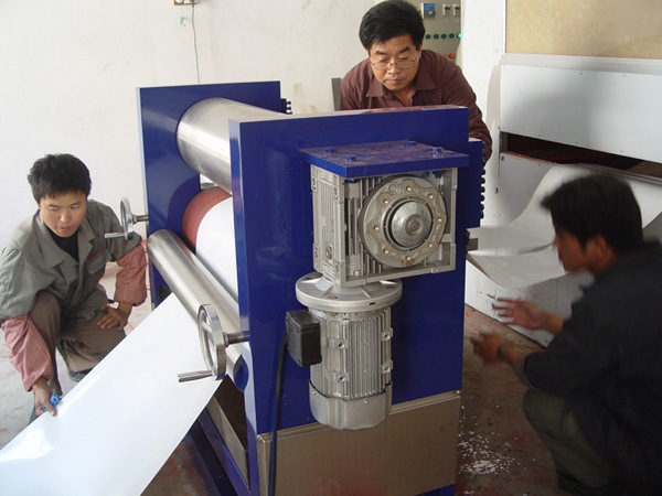2、鋼輥采用厚壁無縫鋼管,鍍硬鉻厚而均勻,精細(xì)加工而成。運(yùn)轉(zhuǎn)平穩(wěn),涂膠均勻。